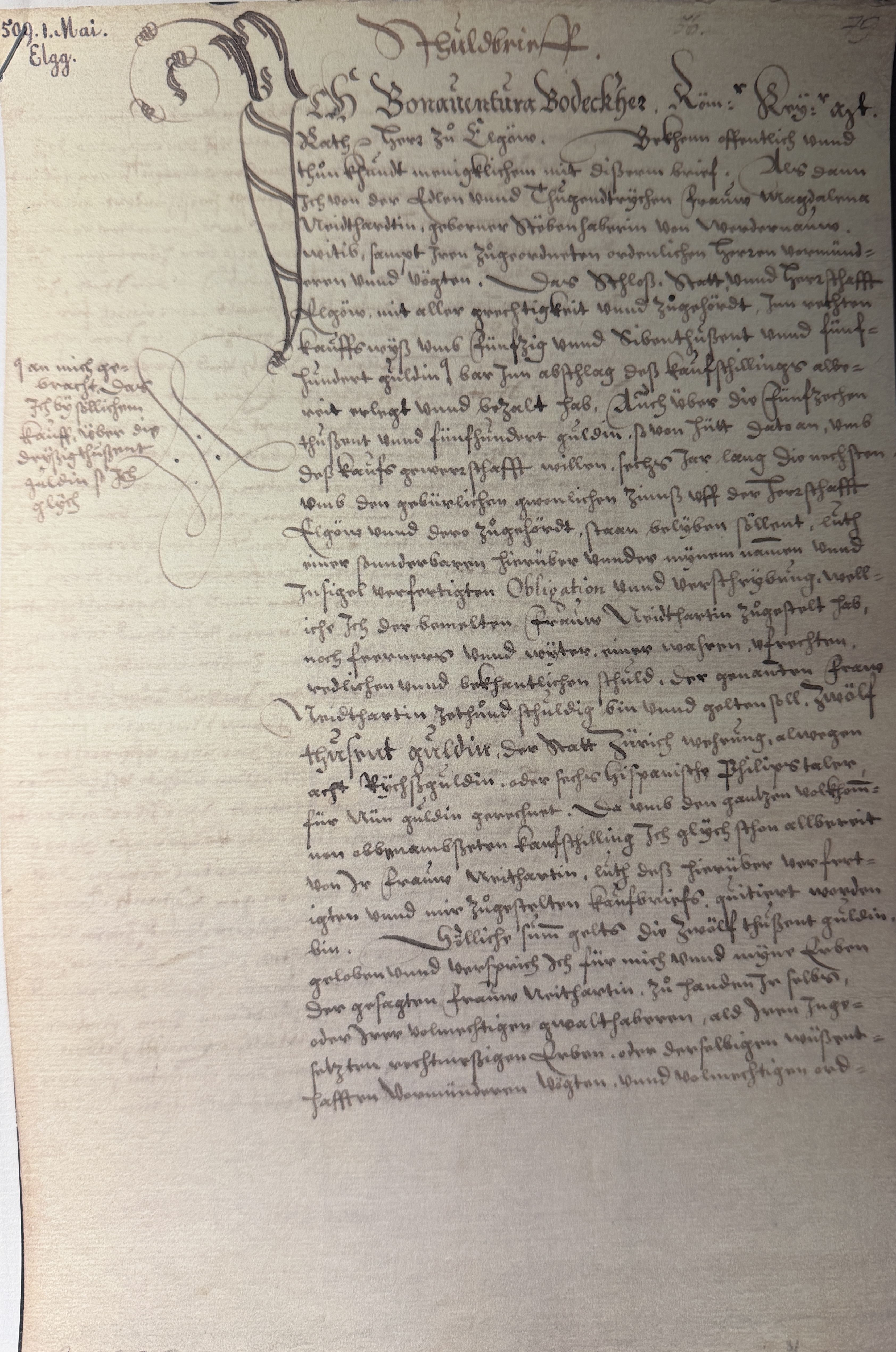 Schuldbrief Bonaventuras II. von Bodeck (Elgg, 1. Mai 1599)